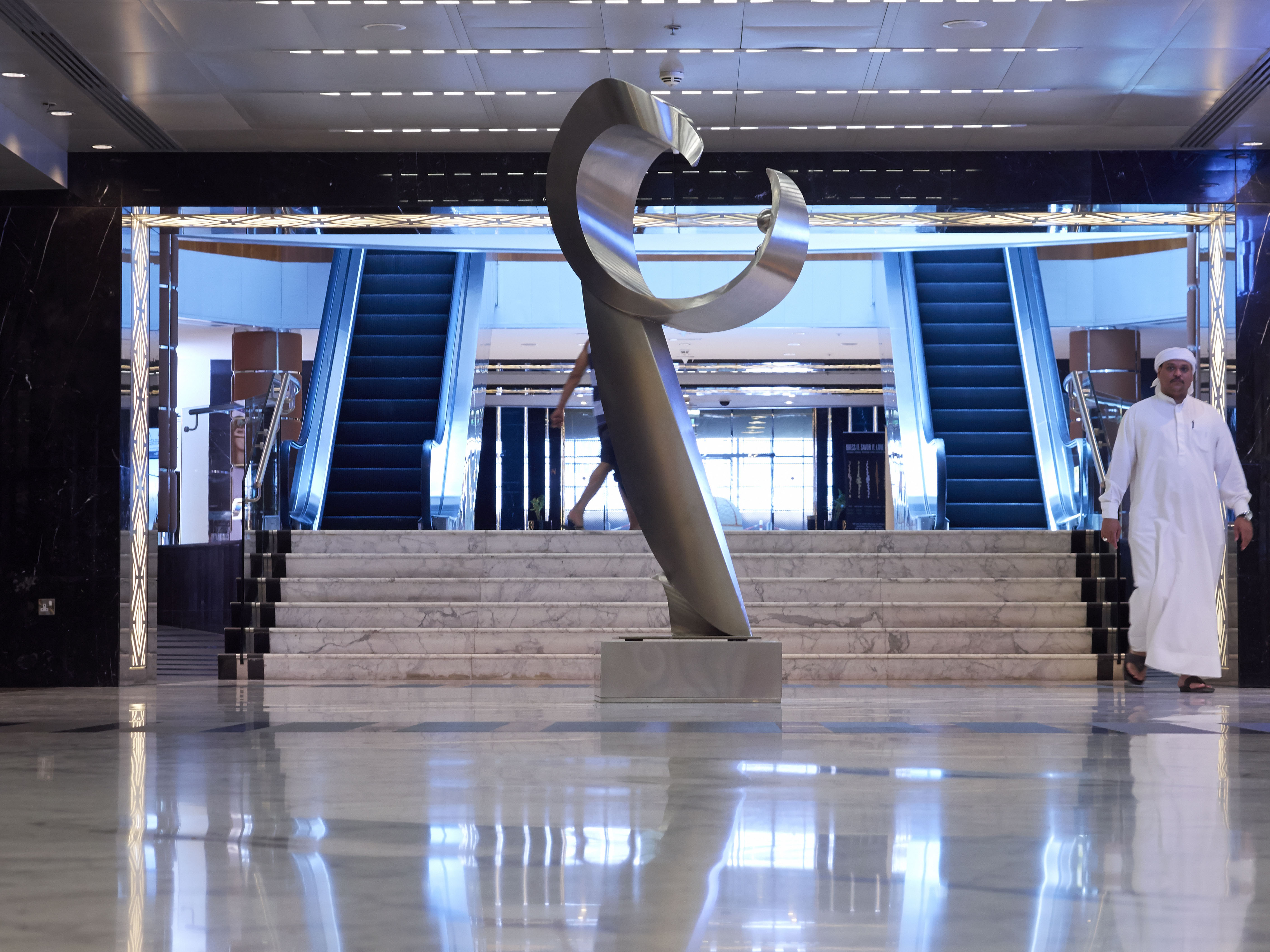 At this point we went to the Financial district where we received passes allowing us to photograph (not a given in Dubai), split into three groups and went at it. I started with the indoor assignment. A few of us spent a little time wandering around to get a feel for what kind of shot might be available. Being a well decorated business area there was quite a bit in the way of color and furnishing to work with, although the building did feel a bit sterile. That’s probably more of a reflection on my ability to see the photograph than any fault of the designers! Still, I managed to come up with a shot in the entrance way I liked.