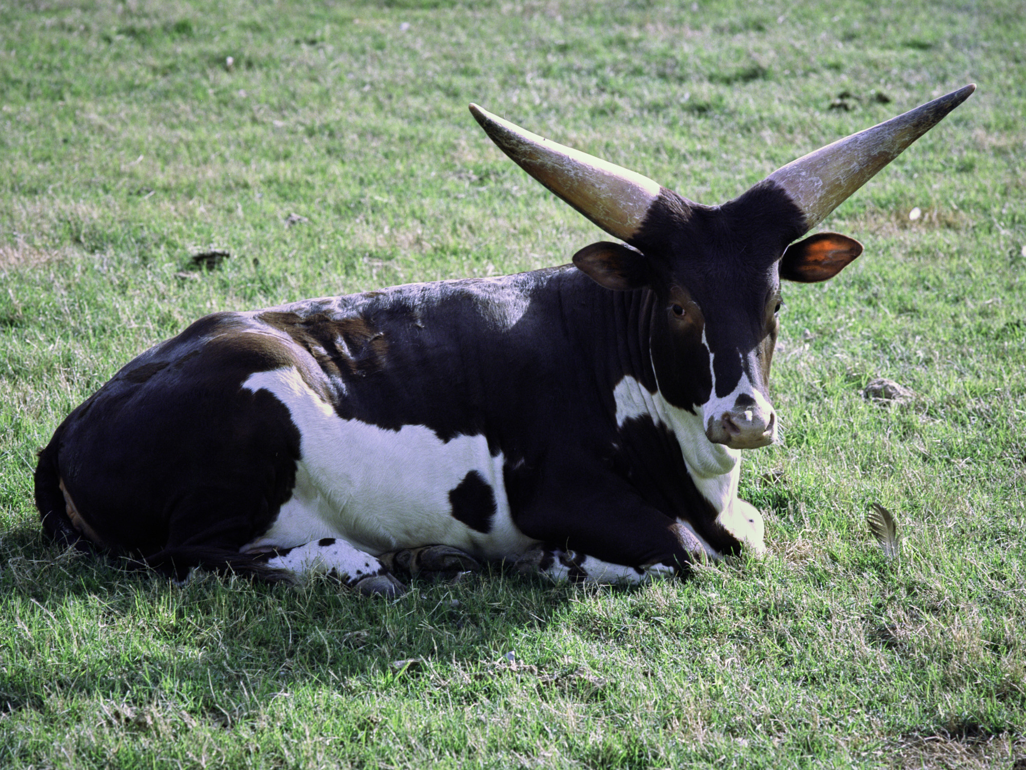 Ankole-Watusi cow catching some morning sun. These are very small horns for this breed. Wildlife World Zoo photos taken with a Hasselblad 500C/M and Portra 160/400 or Ektar 100 film.