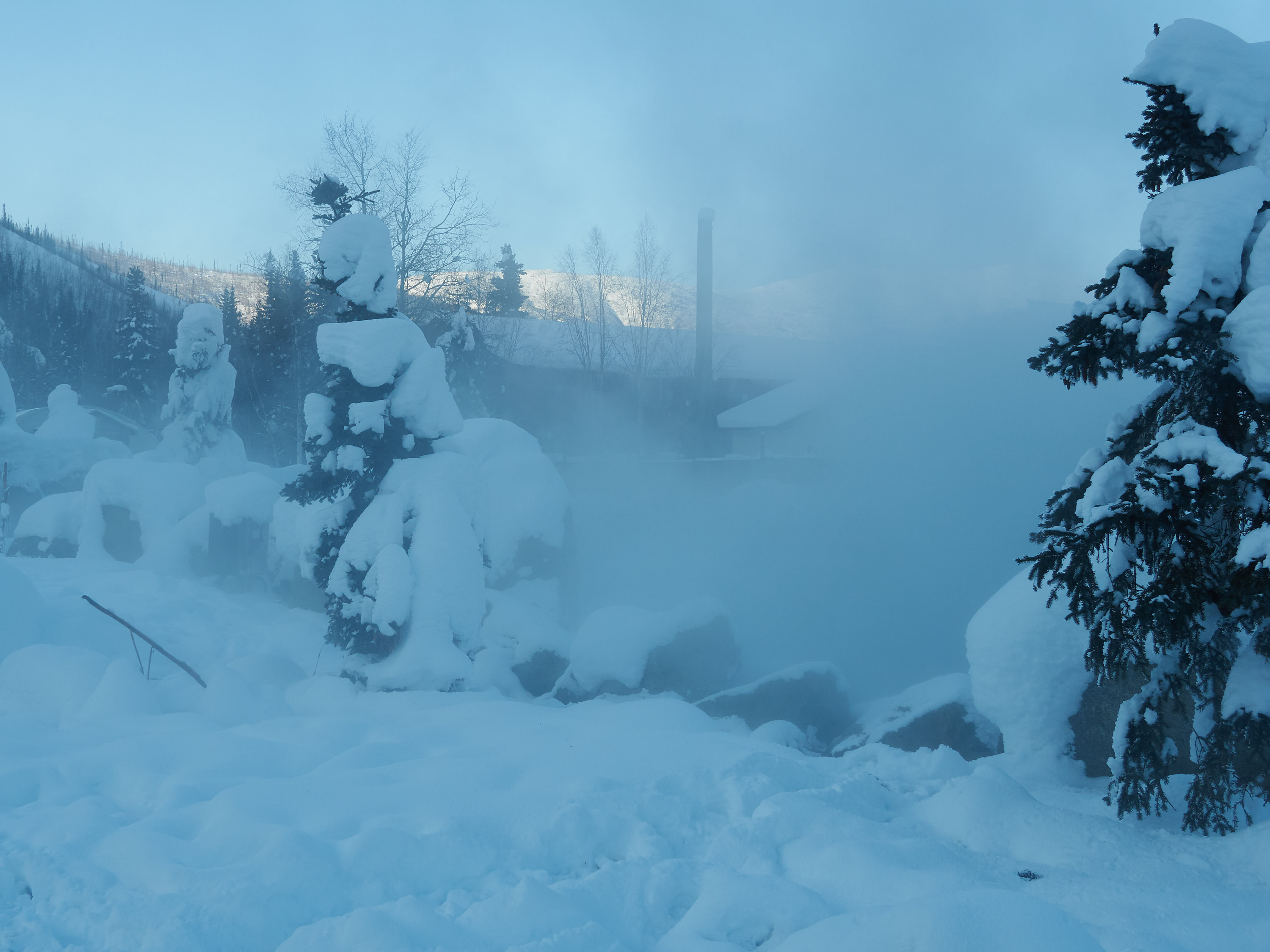 Steam from the hot springs.