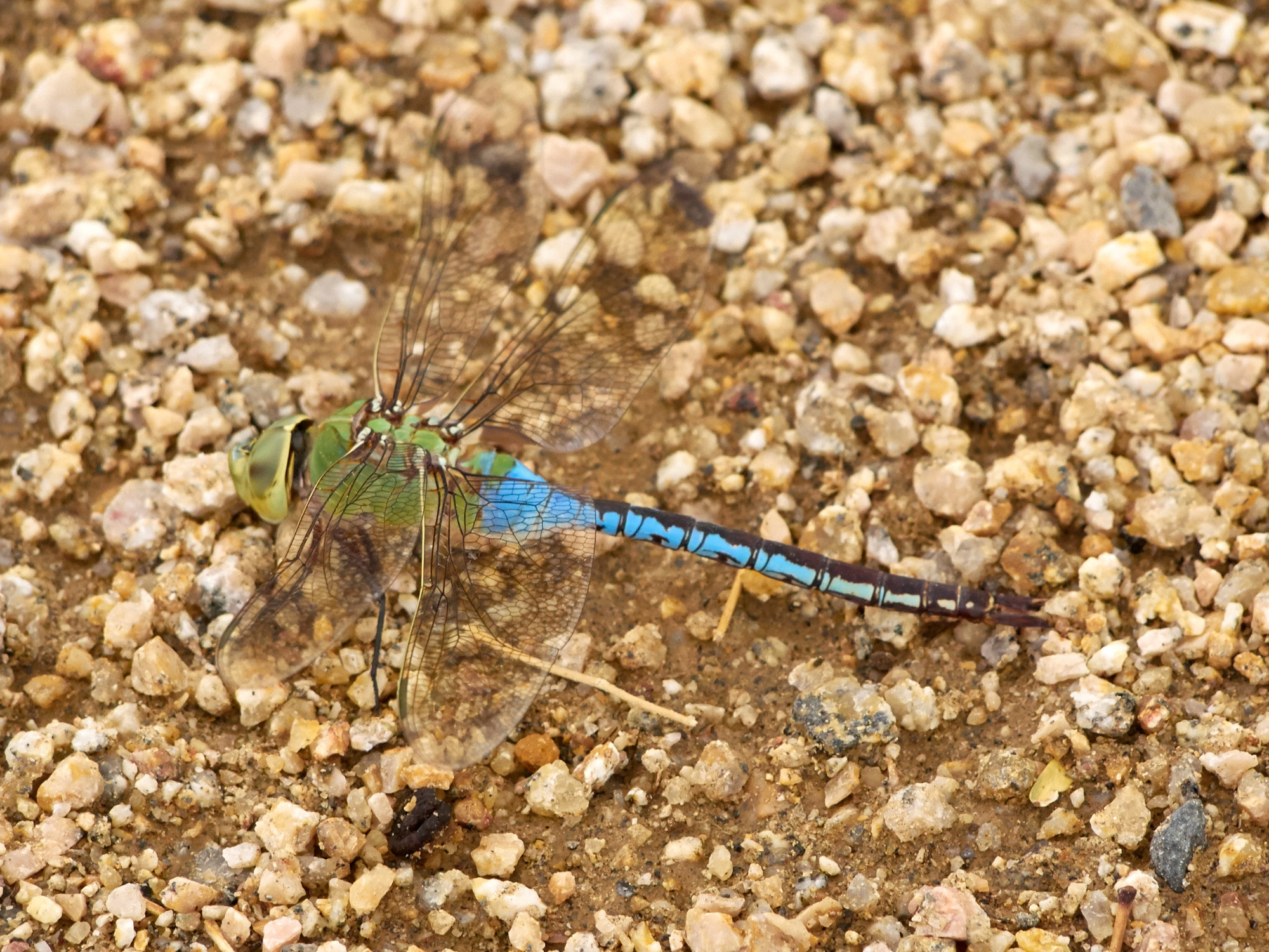 So today we’re out enjoying the pond at the White Tanks, taking a few photos and listening to the wildlife, when we hear a loud “clang!” and the Missus jumps. It seems a dragonfly was preoccupied with chasing a female dragonfly (I’m assuming here, I’m really not too clear how to identify the difference on the fly) and wasn’t watching where he was going. The “clang!” was the sound of him flying into the railing made out of steel pipe meant to keep people out of the habitat. I learned today that an insect can indeed knock itself unconscious. This guy lay there twitching for a couple of minutes – literally – his hind wings would twitch. Finally he came back to life and resumed his pursuit of the female who was no doubt thinking “Idiot…”
